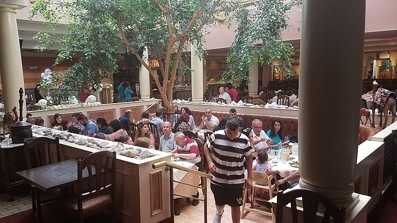 indoor tree, Roman columns and large semicircular booths reminiscent
